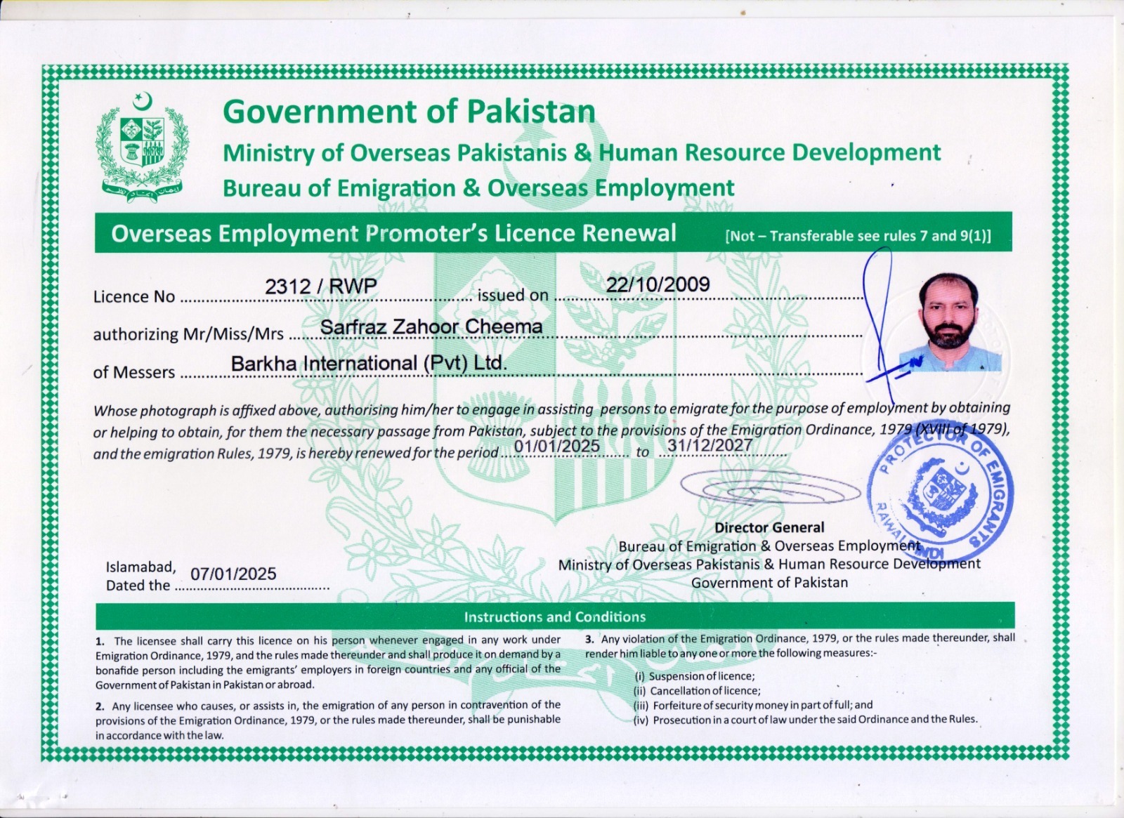Government of Pakistan Ministry of Overseas Pakistani & Human Resources Development Bureau of Emigration & Overseas Employment