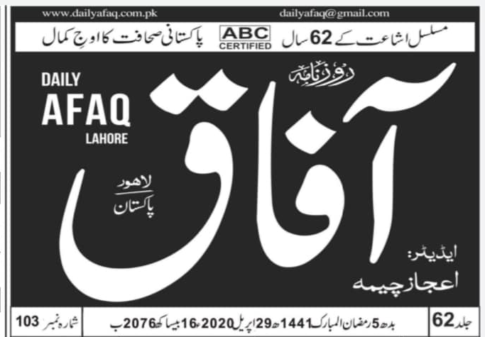 Afaq Newspaper (Urdu)