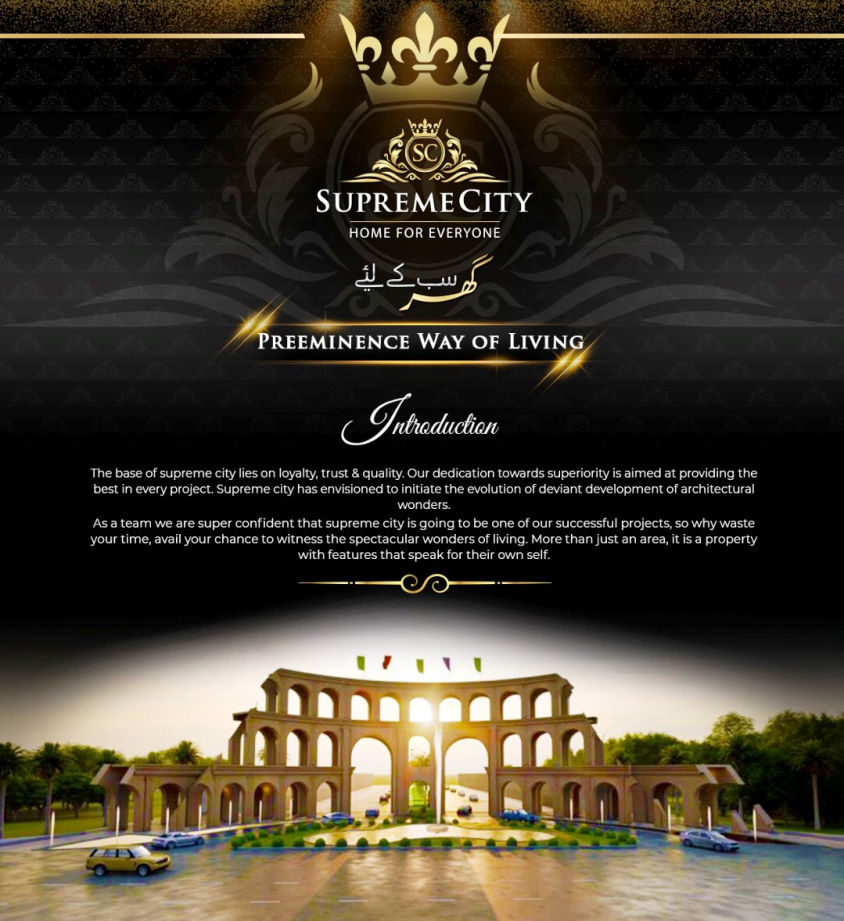 Supreme City Muridke is a project by Bismillah Developers, a trusted name in Pakistan’s real estate industry since 2013. The developers aim to provide premium yet economical housing options.